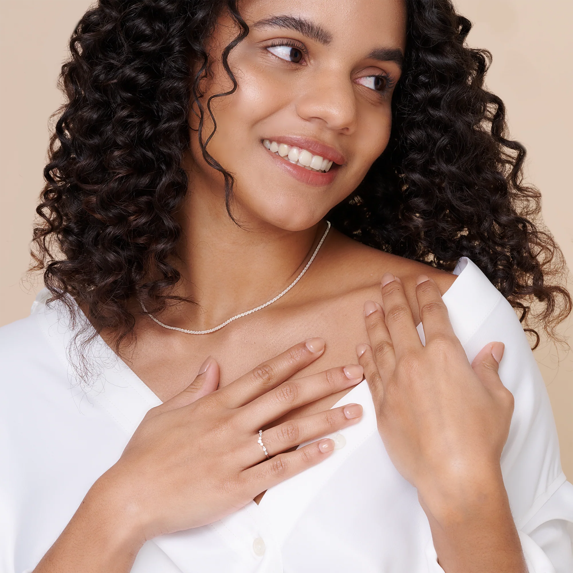 The design concept of Floral Haven diamond line ring is inspired by flowers, delicately showcasing the blooming and beauty of life through fine diamond lines, symbolizing the blossoming and eternal nature of love, allowing every woman to exude the elegance and charm of flowers at her fingertips.