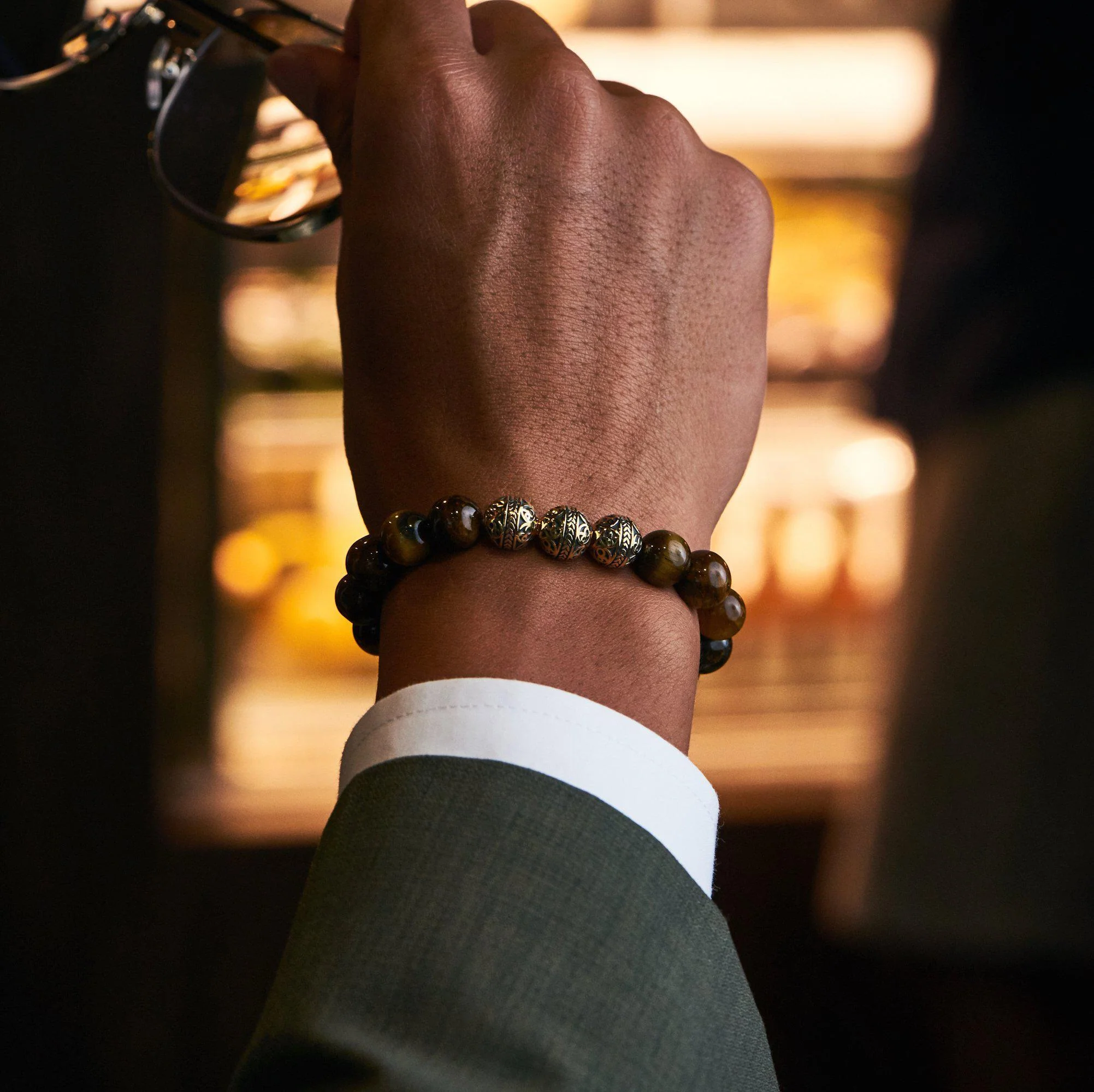 Azuro selects and handpicks the premium tiger eye with circled patterns for its beaded bracelets. The classic gold tiger eye bracelet is one of the most popular bracelets for men.Ā