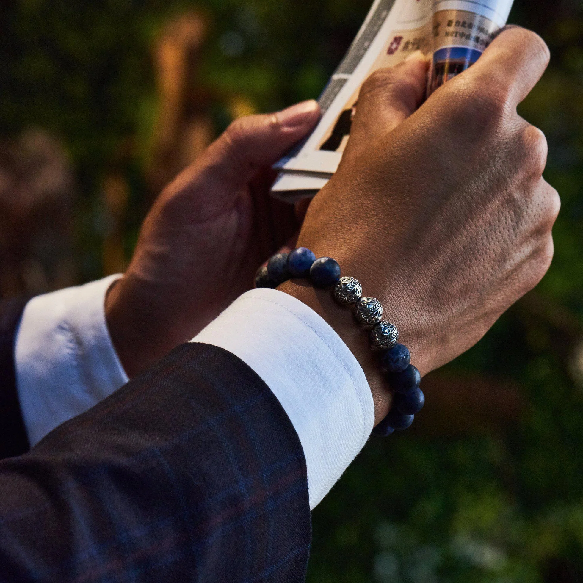 The Matt Sodalite stone in combination with classic Premium 925 Sterling Silver beads helps bring out a renewed sense of confidence and self-esteem. The sodalite stone symbolizes clarity, which helps us know ourselves at a deeper level and be empowered, since the gift of knowing who you are is the foundation of all wisdom. The sodalite healing properties facilitates clear communication and encourages rational thoughts along with verbalization of feelings. With the connection of sodalite stone to the throat chakra, the silver bracelet for man can help calm state of mind and be your true authentic self. The sky-cloud pattern, deep, rich blue Sodalite jewelry combine with Classic Silver bead is a refreshing bead bracelet for men to have, and the sodalite healing properties gives it a soothing and calming energy, which helps to put your spirit at ease.