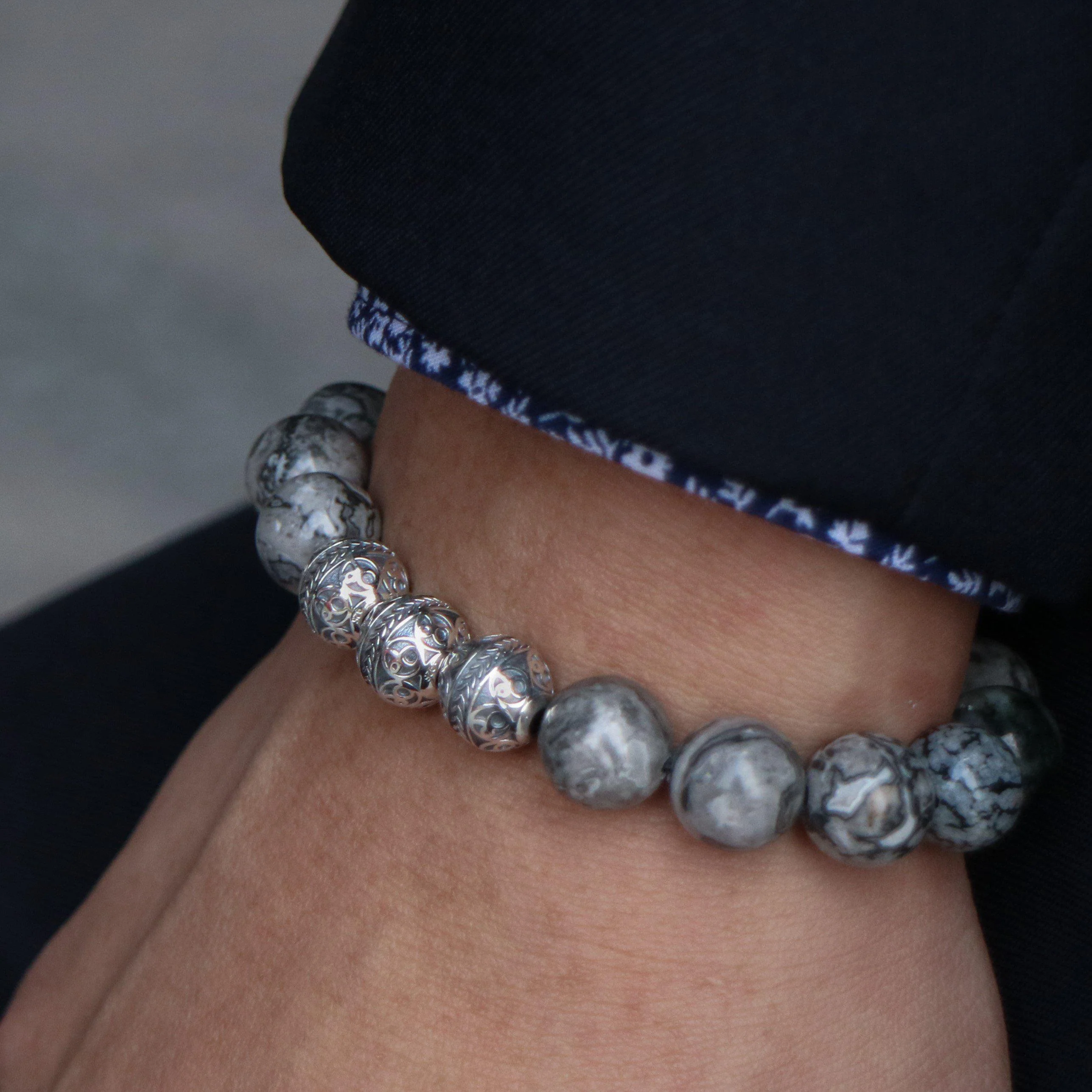 The Picasso Jasper beaded bracelet has a unique ink painting texture and opaque luster. Every Picasso jasper has a different pattern, and every jasper beaded bracelet is like a painting of its own story. Build your own story with AZ beaded bracelets.